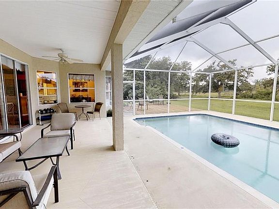Private Setting, 18 home cul de sac subdivision, Perfect family home on pond with dock, newer ROOF and AC. This desirable split open floor plan offers a large family room area overlooking a screen enclosed pool, covered lanai and wood deck, spacious front porch for rockers. NO REAR NEIGHBORS! Great curb appeal and 2 car garage complete this package! NO CDD or HOA FEES! Over 1 acre with mature landscaping, quality oak wood floors throughout. Large inside utility room, office, large family dining area with kitchen bar stools creates great entertainment area, separate formal dining room, large Master bedroom and bath with walk in closet and French doors lead directly to pool area. Long driveway for multiple vehicle and or boat storage capacity. One family ownership from quality Lutz builder general contractor.