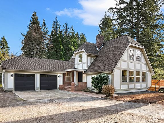 Nestled on a private 2.27-acre parcel, this custom-designed home is impeccably crafted for hosting, hobbies, & savoring the joys of life. Vaulted ceilings, exposed beams & wood-burning fireplace create a welcoming ambiance. The kitchen, featuring chef-approved appliances, brkfst nook, & pantry, is a culinary haven. Opulent primary suite on main exudes luxury w/soaking tub & walk-in shower. Upstairs, 2 beds, bath, & study loft provide additional comfort. Daylight basemnt has spacious family room w/wet bar, guest bed/bath, 2nd laundry & large flex room. A lush assortment of mature PNW trees grace the surroundings where you can unleash your creativity by customizing existing outdoor structures to fit your needs- the possibilities are endless!