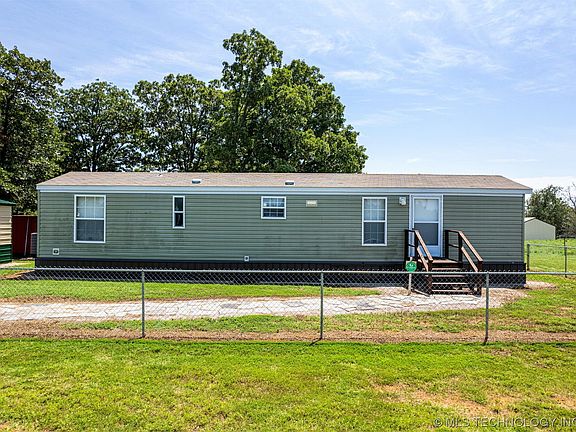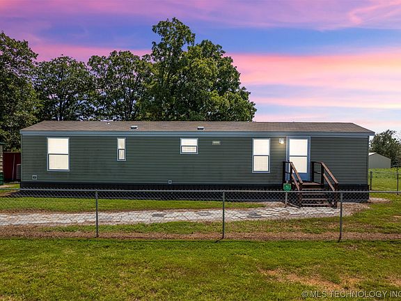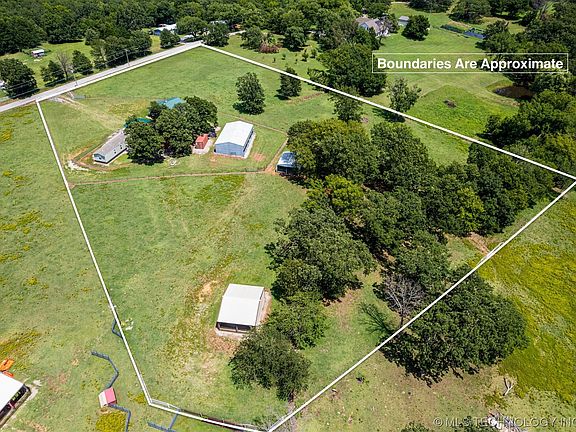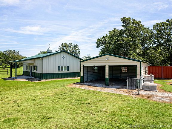Bring your beloved animals and get ready to be captivated! Looking for land, space, and peace? This property is a dreamer's paradise with a charming, furnished mobile home and endless possibilities. Appliances are like new! You'll love the open concept and split floor plan. The 24x30 ft Morton Shop/Building offers year-round comfort with heating and cooling. A sturdy, tied down 40 ft steel storage container doubles as a reliable storm shelter with a walk-in door. A majestic 50 ft barn with an attached shed is perfect for your cherished livestock. Supplementary structures and carports provide extra space. Set on 5 acres, this property harmoniously blends natural beauty with functional elegance, fulfilling your dream of a peaceful sanctuary. If building your dream home is an option, the building sites are breathtaking! Additional, detailed information and improvements available upon request. EASY access to highways, turnpike, Grand Lake, Claremore Lake, Hudson Lake, Oologah Lake, Ft Gibson Lake, and Vinita!