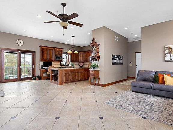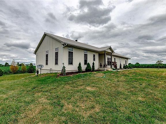 Enjoy the countryside in this beautiful ranch home with an open floor plan sitting on 32 acres. Expansive kitchen features a large island, granite countertops, double dishwasher, and commercial fridge with a dining area that's perfect for entertaining. Relax in the master suite, complete with walk-in closet, double vanity, and luxurious 2-head tiled shower. Laundry is located on the 1st floor for main-level living. Basement rec room features a deep closet and walks out to a beautiful view of the green acreage.