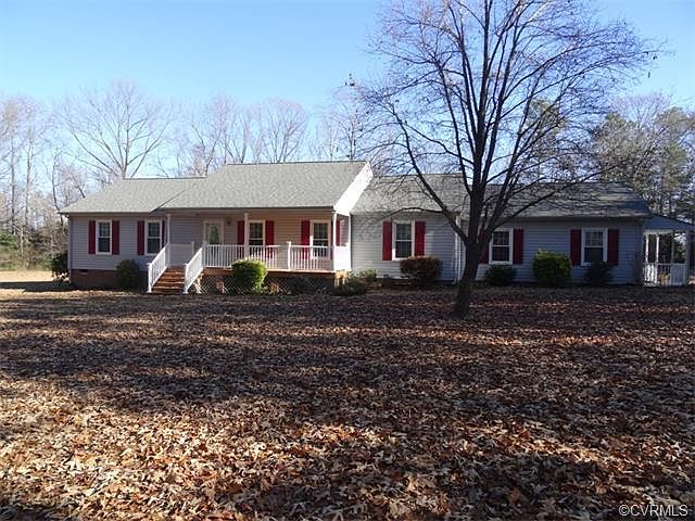 Absolutely gorgeous one level rancher located on over 5 acres of mature landscaping in a peaceful private setting in the heart of Prince George County. This magnificent home boast over 2000 sqft, 3 Bedrooms, 2.5 baths, Formal Dining Room, Formal Living Room, Den, Sun-room, Entertainment Room, and Laundry Room. the exterior boast 5.37 acres, Country Front Porch, Back Porch, Side Porch, and a Detached Garage/Pole Barn. You must see to appreciate all that this home and land has to offer. Close to major HWYs, and Fort Lee. Please call today to see it in person.