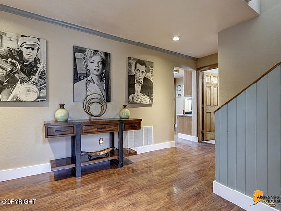 This is a refuge on a hill, in a cul-de-sac, located in the warm and inviting Eaglewood subdivision. Enjoy this four bedroom, three bath home with stainless steel appliances, 42'' cabinetry & hard surface counter tops. Deep 775 SQ FT three car garage. Nice mountain views, close to schools, JBER, shopping and running trails. Enjoy the expansive southwest facing deck to soak up all the sun.
