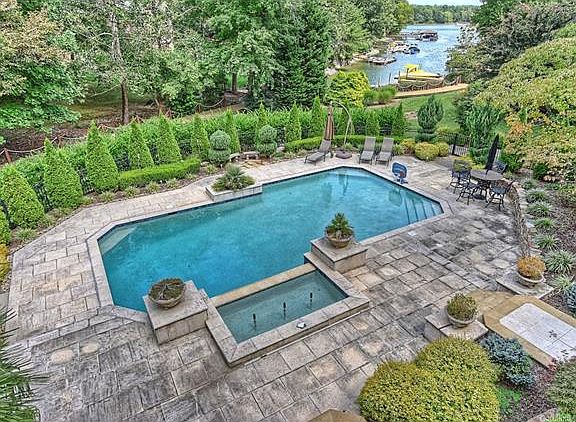 This stunning home was made for entertaining! Water view w/in-ground saltwater pool & expansive patio areas w/outdoor kitchen on .96 acre lot! Ranch home w/formal dining, office, living room w/fireplace, kitchen w/granite, tile backsplash, gas stove, stainless appliances & breakfast area, family room, owner's suite w/gorgeous bath, his & hers closets & patio access, finished basement w/family room w/fireplace, media room w/wet bar, exercise & more! New common pier w/boat slip right off backyard.