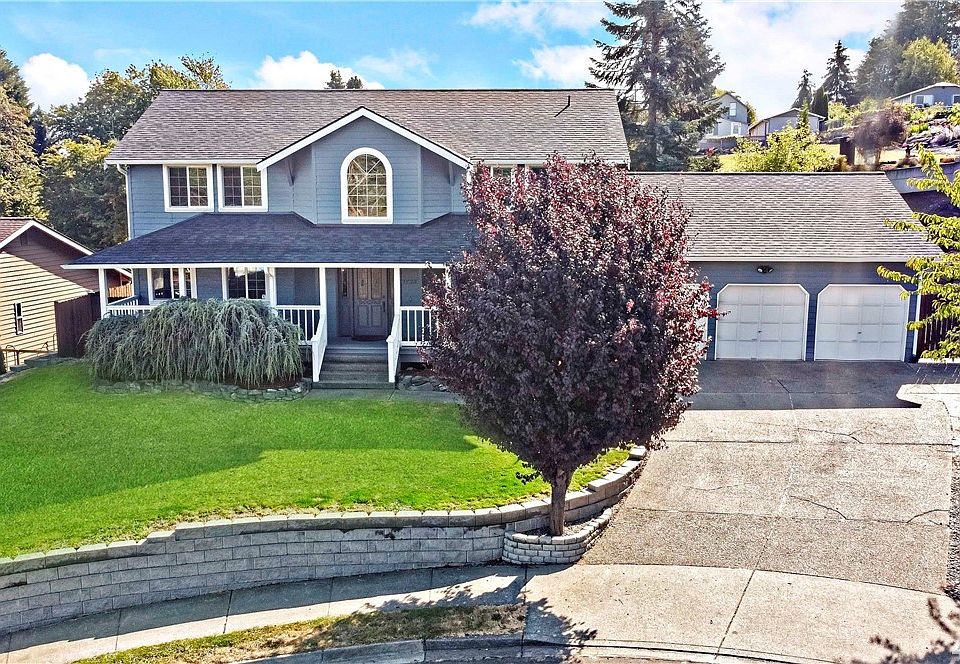 Welcome home will mean so much more in this beautiful 2-story near the heart of Puyallup. The grand entry is open & bright. Check out the kitchen w/granite counters & big pantry. Relax in the large master suite w/gas fireplace. Entertain out on Trex deck w/ hot tub in the fully fenced yard. Features: New roof, original hardwoods, 6 panel doors, wood wrapped windows, heat pump/AC, security cameras, deep 3 car garage, RV parking & located at the end of a culdesac just blocks from the Fairgrounds!
