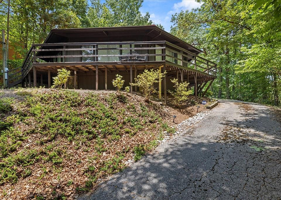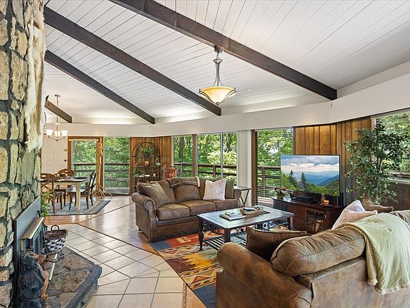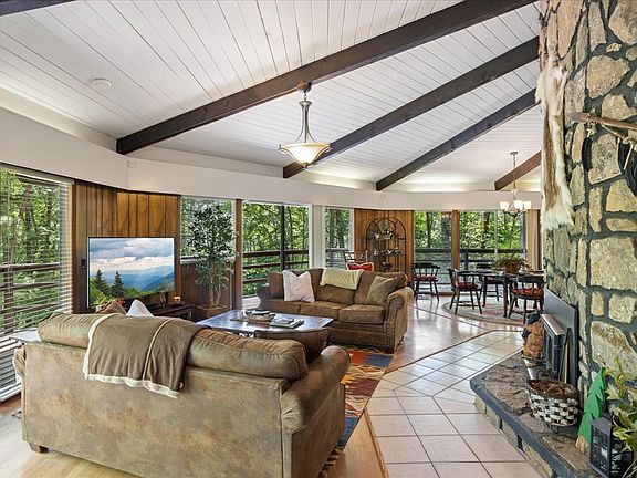Lots of windows allow sunlight to brighten up this 4 Bedroom, 2 bath unique one level octagon shape home. The living/dining /kitchen great room occupies the front half of the home with the bedrooms and baths in the rear. As you walk up the entrance steps the deck continues to wrap around all sides of the home. Upon entrance to the great-room you are greeted by one of the two dining areas and the living area at the center which features a huge woodburning fireplace. Conveniently located just behind the fireplace is the very practical galley kitchen which can easily serve either dining area . Circle around down the hallway to the four bedrooms each decorated with charming character. Both bathrooms are just across the hall from the bedrooms. The spacious wrap around deck allows for plenty of outdoor relaxing. Make this your next over-night rental investment or your own Smoky Mountain vacation retreat. All appliances, furniture, TV, decor, window treatments and house-hold items convey with the sale of the home.
