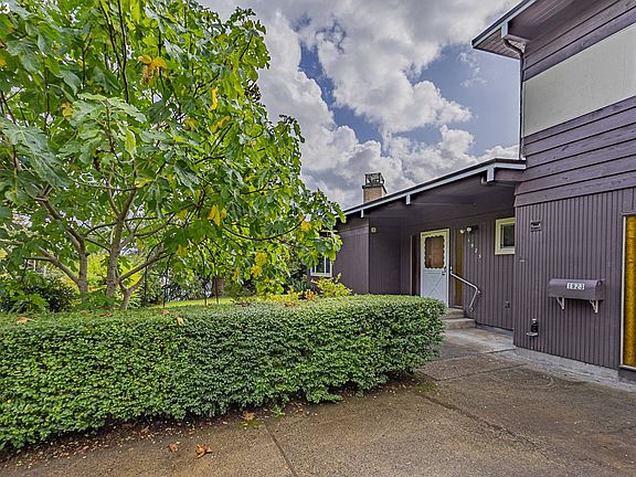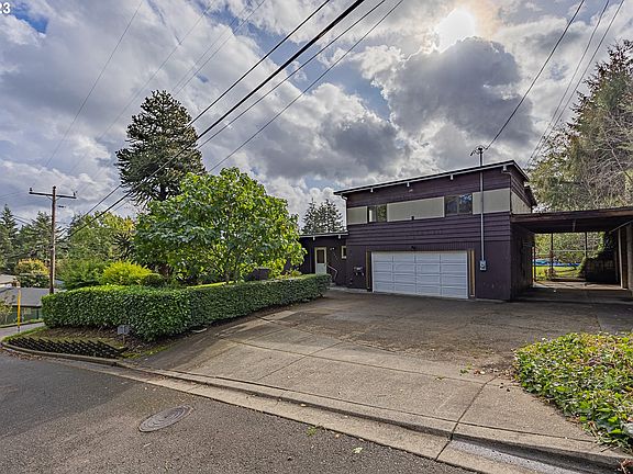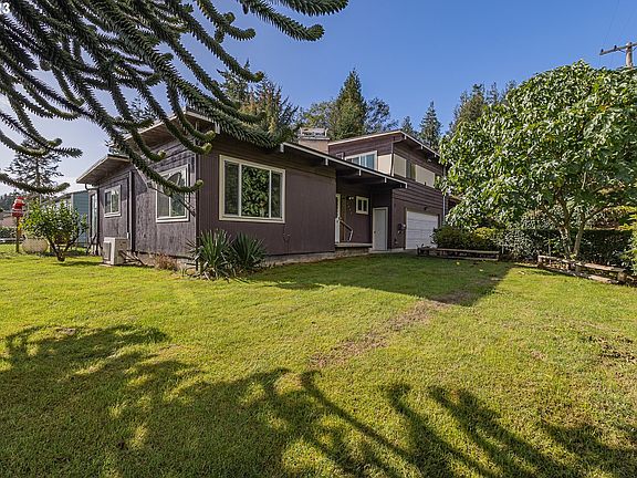 Solid 2 story home with tons of parking and beautiful yard space! Front porch overlooks lush yard with blueberries, fig tree and big monkey puzzle tree. Home features one bedroom on the main level, 2 more upstairs, one being the primary suite with attached full bath, balcony and tongue/groove cedar ceilings, stone fireplace in the living room, 2 ductless heat pumps, sunroom off the kitchen and laundry room on the main level. Oversized double car attached garage and additional RV carport. Lots of storage and room to spread out! Must see!