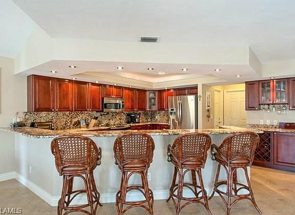 H.8616 -This home blends the charm and uniqueness of a custom plan with all of today's desired finishes. Great curb appeal without that cookie cutter feel. Open and spacious rooms, high ceilings with large tile flooring which flows from room to room. All new cabinetry in the state of the art kitchen. Stainless Steel appliances and gorgeous Upgraded granite grace the warm rich cabinetry in the kitchens and baths. Large wrap around breakfast bar with LED custom lighting and separate dry bar with wine storage. Doing Laundry is delightful with large window for natural lighting. Plantation shutters add that finished touch to most rooms. There is a large dining room with a bay window for all those holiday gatherings. The covered lanai is perfect for dining and casual seating groups while the kids frolic in the oversized pool which has been recently resurfaced. The half acre lot affords children and pets lots of room to play and run around. There are hurricane shutters for every opening which helps reduced insurance. Roof and AC are only 2 years old, so buying is worry free on this one. This is a fabulous buy where you can move in and enjoy paradise.