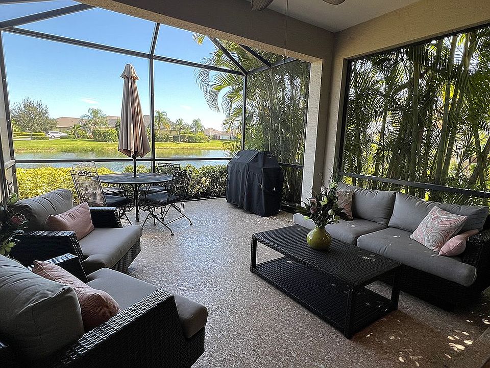 Home at 1923 Crystal Lake Trail, For Sale by Owner: $389,900 Two Bedrooms, Two Bath Plus Den/Office, Large Villa in the Gated, Eagle Trace Community, in the Lakewood Ranch Area. Home is located on a Premium Water Lot with a Large Lake View, and has Design Upgrades including Plantation Shutters and Ceiling Fans throughout. Kitchen has Stainless Steel Appliances, Upgraded Cabinetry and Granite Counters. Dining Area accommodates Formal Dining Decor. Home offers an Extended Caged Lanai, with Epoxy Floors and a Two Car Garage with Painted Floor. The Amenities Center includes a Resort Style Pool and Spa, with Open and Covered Seating, Gas Grills and Restrooms. Tennis Courts, Pickle Ball Courts, Dog Parks and Kiddie Lot adjoin the Amenities Center. Call for Private Showing 901-409-9337