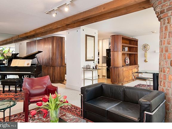 Truly unique former carriage house completely restored by Adolf Deroy Mark into a Classic Mid-Century Modern Gem! This sun-flooded Townhouse enjoys a prime location on Philadelphia's desirable Delancey Place. This home features 3 bedrooms plus a study, 3 full bathrooms and a stupendous roof deck with north, south, east, and west views. Spectacular open living room and dining room with a fireplace and custom built-in kitchen. Adjacent to the dining room is a luscious conservatory that affords magnificent live fig trees and sunlight from huge south facing windows. The 3rd floor is a spacious master suite that is graced with exposed wood-beams, 15+ ft. high ceilings, great closet space, two luxurious bathrooms and an additional study. The top floor can be utilized as a home office that opens to a large roof deck with dazzling city view. Four-Car parking! 2018-07-25