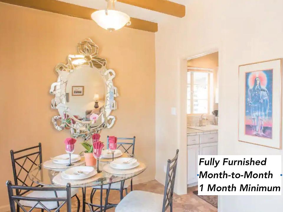 Fully-furnished stand-alone casita in terrific area of Tucson. Great short-term or vacation rental. Enjoy easy access to everything from this perfectly located home base: -- Minimum 30 day rental -- Just 1 mile from Banner Hospital, and just a bit further to the University of Arizona -- High-speed Wifi -- All utilities included (electric allowance $125/month) -- More than 12 restaurants within 3 blocks of this charming casita -- Queen bed and lots of storage in bedroom -- Attached, private carport -- Private, fenced courtyard with gas BBQ -- DISH Top 200 Channels provided -- Complimentary washers and dryers on property -- Up to 2 well-behaved dogs 40 pounds or less allowed with pet fee -- Located in historic neighborhood of the popular Campbell Corridor -- Bedroom closet contains clothes hangers, ironing board, vacuum, broom, dustpan, mop and dirty clothes basket. -- We provide a "starter" set of hand soap, lotion, shampoo/conditioner, laundry pods, dryer sheets, and cleaning agents. -- Kitchen is well-outfitted with a microwave, full-size gas range and refrigerator, drip coffee-maker and French press, blender, mixer, pots, pans and more! -- Private, fenced courtyard contains dining set, outdoor seating areas, and gas BBQ. -- 130 miles of bicycle and walking paths are nearby at the famous "Loop". -- Lease term minimum 1 month; This unit is currently available through January 31, 2023 -- Well-behaved K-9's at least 1 year old and 40 pounds and under are welcome. Pet fee is $100 per dog per stay. -- Dogs are not permitted on the beds, couches, or other furniture. Excessive shedding may result in additional cleaning fees and evidence of soiled rugs may result in charges for professional cleaning. Guests are asked to patrol for poop daily. -- No charging of electric vehicles -- Smoking is allowed outdoors only -- Only guests listed may stay overnight at the property -- Security deposit is fully refundable when unit is left in the same condition as when rented.