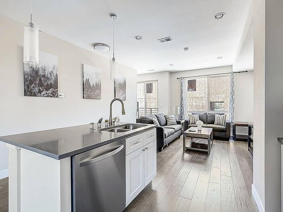 Modern town home with views of city and mountains. 5 blocks from Sloan's Lake. Spacious, open floor plan, stainless steel appliances, quartz counters, euro flat-slab cabinets, and a roof top deck. Attached 2-car garage. Each bedroom has an en-suite bathroom. First floor has garage, one bedroom/bathroom. Second floor has dining, kitchen, living room and full bathroom. Third floor has 2 bedrooms with their own bathrooms and washer/dryer. Then the rooftop deck is above. Pets allowed for additional $25/month per pet. Property is currently occupied, so tours will only be given for seriously interested applicants. Photos are from when the property was previously furnished. Property is offered unfurnished. Owner pays for trash, sewer, and water. Tenant pays all other utilities