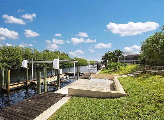 The house is located on a wide canal with direct access, no bridges, concrete seawall and extensive wooden dock. It is located near the midpoint bridge and Del Prado Blvd. As you can see from the photos/virtual tour this is a beautifully decorated and maintained home and is worth taking the time to schedule a showing appointment to see all that the home as to offer. Beautiful finishes include marble flooring, crown molding, granite kitchen counter tops, stainless steel appliances, pantry, walk in closets in all 3 bedrooms, pass thru window, French doors w/ blinds inside glass leading out to the spacious lanai with stamped concrete brick like pavers throughout the lanai and pool area. This is a must see call today!!!