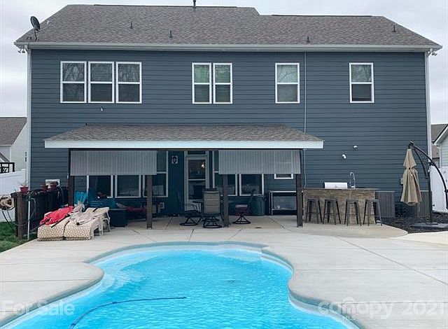 Home is in sought after Bonterra Community. This home features 5bedrooms, 3 1/2 baths, living room with surround sound, dining room with crown molding, bedroom down being used as office. The kitchen has large island with extra seating, touchless kitchen faucet, double wall oven. Large walk-in pantry, butlers pantry/coffee bar area. Backyard is your own personal oasis with in-ground pool, covered back patio, Island bar with fridge, fire pit all surrounded by 6ft vinyl privacy fence. Front of home features inground irrigation, tandem garage for extra storage and tankless water heater, extra concrete driveway for additional parking. All of this on one of Bonterraâs premium lots which backs to the woods. Ceiling fans in living room, master and bonus/bedroom.
