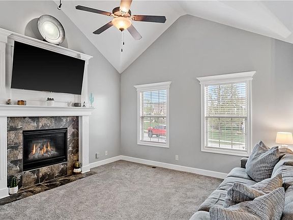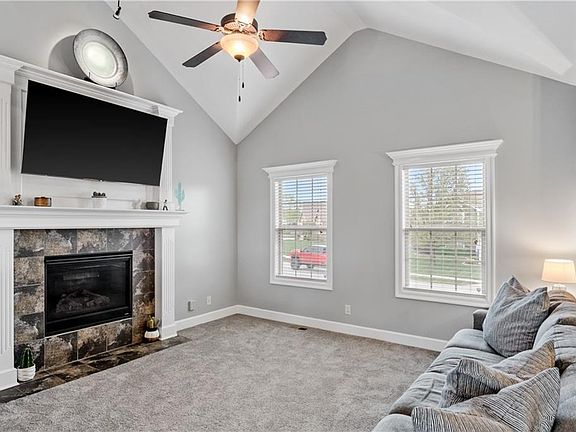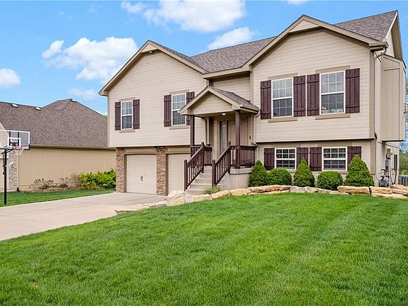 Discover your dream home with this must-see property! The vaulted ceilings throughout create an airy and spacious feel, making this home the perfect retreat. You'll love the primary bedroom, which features double sinks and a huge walk-in closet for all your storage needs. The lower level boasts a second living area, a fourth bedroom with a full bath and walk-in closet. The home is ready for you to move in featuring fresh paint, new roof and brand new carpet throughout the entire home! Enjoy the benefits of a walkout garage that opens to a huge yard, patio, and new back deck, all overlooking a beautiful green space that provides a serene, quiet country living feel. You'll also have access to the neighborhood pool and park, just a short stroll away. Plus, this home is conveniently located between Lees Summit shopping and Raymore's restaurants, so you'll never be far from the action. Don't miss out on the chance to make this amazing property your own!