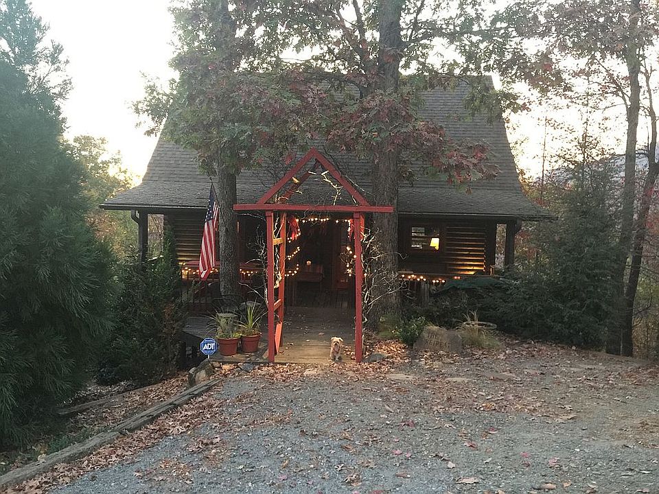 TOTAL SOLITUDE! Wonderful log home with an awesome mountain view. If you see the western sunset from this covered back deck you will never want to leave. Spiral stair case to loft BR. Full finished basement has BR and full bath plus lower terrace sitting area and decks leading to hot tub. Upper level has wonderful covered deck great for entertaining. Lower level den has two sets of French doors leading to lots of decking. Lower covered porch with Jacuzzi. Over 1400 SF heated space counting the finished basement. Exterior was freshly stained and trim painted in APRIL 2019. New roof and A/C installed at that time also. No other cabins in sight just nature and views! The subdivision is a gated community. THERE IS AN ALARM.