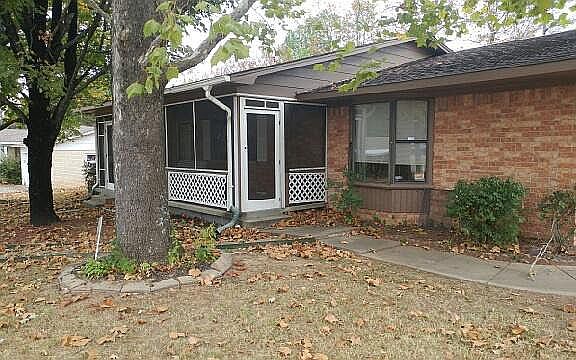 Price Reduced: This house is for sale or rent. If interested in viewing this house please call Jim at (479) 274-9169 or Evelyn at 479-652-2962. Rent would be $1000/mo plus deposit. Very spacious 3 bedroom and 2 bath home with attached 2 car garage. Features large living room space that includes a fireplace and bay Windows. Newly remodeled kitchen with appliances. (stove, oven, dishwasher and garbage disposal in sink). Main bathroom has standard tub and shower with tiled walls. Master bedroom bath has a complete tiled stand up shower. Bonus room could be used for an office or for a formal dining room or family room. Bedroom closets equipped with storage shelving. Fenced in back yard with a detached 12 x 12 storage building. Screened in front porch is completely enclosed and has eye hooks to attach a porch swing if desired. Fresh paint through out the house. Hard wood floors in entry way, bonus room, hall and bed rooms have been refinished. There is a deck outside the kitchen window that was built for a hot tub. There is a breaker box on the side of the house wired for 220 next to the deck.