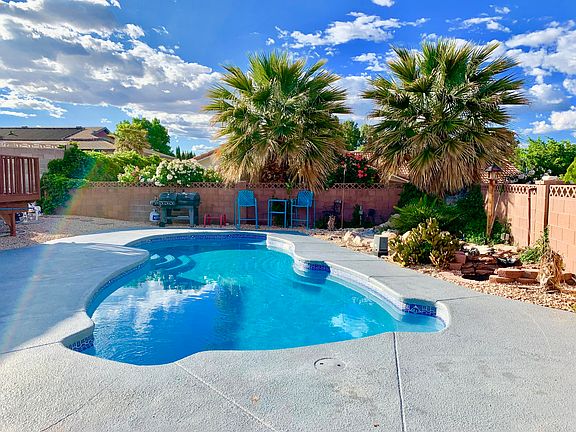 Cool off and relax in your private pool and separate spa! Enjoy the character and flexible floor plan that this home has to offer. Large bedrooms will easily accommodate queen size beds. This cul de sac home is close to one of the many neighborhood parks in Bloomington Hills offering a sand volleyball court, tennis courts and plenty of other entertainment options! Home is in Dixie Power boundary.