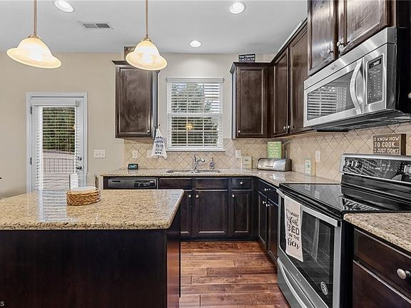 Welcome to your two story home with covered rocking chair front porch in sought after Mackintosh on the Lake! Spacious & sunny formal Dining Room for all your entertaining needs at the entry flows into your lovely living room with lots of natural light & gas fireplace for cool nights. The Breakfast room opens into the Kitchen which boasts an island, granite countertops, S/S appliances, tons of cabinets, pantry & tile back splash. Half bath finishes first floor. Spacious Owners Suite on second floor with vaulted ceiling, tons of windows & ceiling fan. Primary bath has double vanity, Walk in shower, garden tub and large walk-in closet. Three additional spacious bedrooms and laundry room complete the second floor. Enjoy your mornings with a cup of coffee while sitting on the large patio enjoying the back yard. Resort-style amenities include pool, splash pad, basketball, volleyball, and tennis courts, miles of sidewalks and planned community events for all ages! Love where you live!