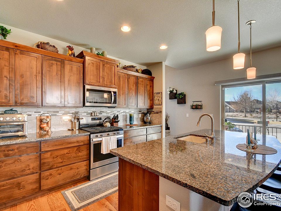 Luxury maintenance free living! An absolute stunner! Welcome to this quality built Glen Homes Townhome! The Mallard floor plan has 2 yes 2 primary suites complete with walkin closets and private ensuites, boasting hard surfaces, custom granite topped seating in the main level shower and tiled back splashes. Beautiful hardwood flooring throughout kitchen, living and dining space. Kitchen is fully loaded with Stainless steel appliances, Gas range/oven, granite countertops, tiled backsplach, slide out shelving in the pantry and custom built lower cabinet drawers, sure to fit all of your culinary gadgets. Conveniently located main level half bath directly off of the laundry room and garage door entry. Laundry room features beautiful above cabinet storage and the fully unfinished basement is ready for storage or expansion. Lets not forget a secondary living room/flex space located on the upper level that won't dissapoint. Oversized attached 2 car garage will store more than just your cars! You couldn't better located with quick access to Hospitals, shopping and dining. Boyd lake and trails are all within walking distance! We look forward to your visit! Schedule a showing today!