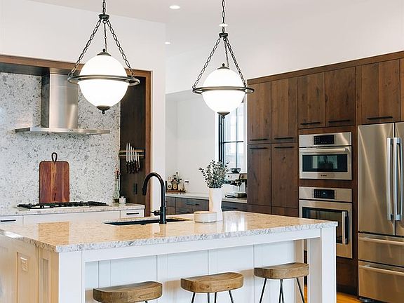 - Description: Gas Range, Custom Cabinetry, Large Island