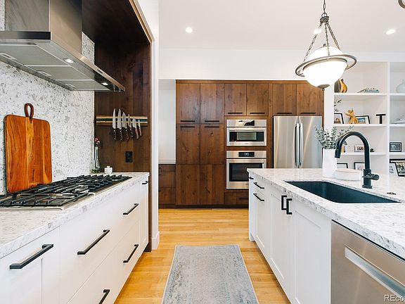 Tucked into Denver's Lower Highlands neighborhood, this home exudes an aura of class, modern comfort, and spacious living. Designed by renowned architectural firm Alvarez Morris, this design exemplifies their mission; to ensure that each of their designs is “a balanced composition of contemporary and traditional elements that exemplify sophistication and timeless elegance.” They truly outdid themselves with this home, highlighting three floors of gracious comfort & plentiful light. With 10-foot ceilings throughout, and taller vaulted ceilings on the top floor, this home feels boundless. As you enter the home, the wide-plank hardwood floors invite you in with warmth and style. Just off the entryway is a private dining area complete with fireplace and butler’s pantry. The main level boasts a masterful design with large gourmet kitchen which opens to the living and entertaining spaces that overlook the back patio and private yard. Upstairs is the spectacular primary suite with luxurious 5-piece bathroom & walk-in closet, two additional bedrooms, full bathroom, and a laundry room. Heading down to the basement you’ll find another bedroom with walk-in closet, full bathroom and a massive great room. Storage is not an issue as there are two additional storage rooms as well as a large unfinished utility room. Out back of this oversized duplex lot is a detached two-car garage with the square footage of a three-car. This premier LoHi location has easy access to Downtown Denver and is only a few blocks to countless shops, bars, and restaurants. This home is a jewel in one of Denver’s crowning neighborhoods!