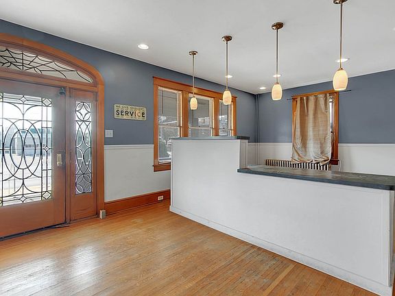 High visibility and strong traffic count with lighted signage. Gorgeous 1st floor office with possibility for home office, huge front porch, beautiful hardwood floors and some carpet. 3 large rooms, off street parking for 10-12 vehicles, w/d hookup in basement. Window air conditioners. New appliances in kitchen. French doors between rooms. Full bathroom. Large basement work area. Rent $950 plus all utilities: gas, sewer/trash (paid quarterly). Application and credit check. Non-smoking