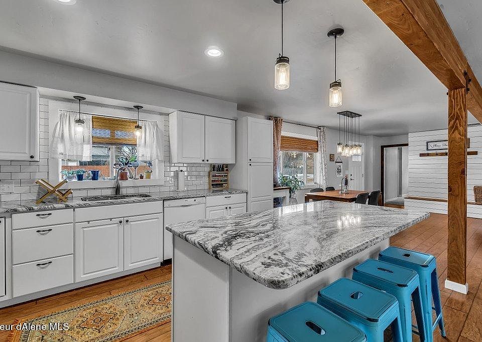 Enjoy this stunning 4 bedroom 2 bathroom single level home located in Hayden, Idaho. This home was remodeled in 2015 creating a bright open floor plan, granite counter tops, stainless steel appliances, a kitchen island, and a large lot. The spacious master suite features a brick fireplace, a clawfoot tub, a walk-in shower, and two vanities with sinks. Relax in this quiet neighborhood on the .31 lot featuring RV parking, attached two car garage, and a fenced in backyard. Don't miss this opportunity!