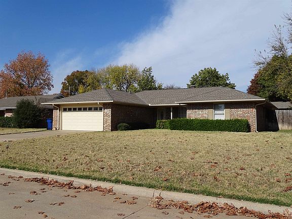 The bones are good & been maintained well. Located in the Timbergate area, just off the beaten path. Featuring 3 bedroom, 2 bath, large living area with wood burning stove, loads of storage throughout with real wood cabinets. Kitchen dinning combo with loads of cabinets. Main bedroom has 2 closets. Step out into a nice covered patio and landscaped lawn. storage building and sprinkler system. Listed by Michelle Lewis with Kay's Real Estate 580-470-5264