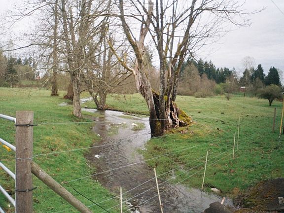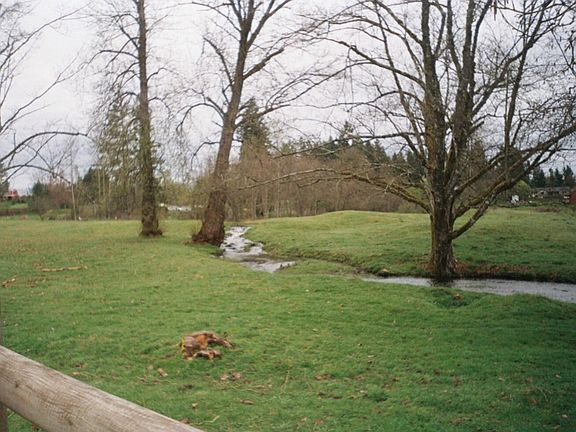 Idyllic Country setting on 5+ acres. Gurgling seasonal creek w/pond. Sets back from main road at end of private road. Fully perimeter fenced and cross fenced. Comfortable and clean 3 Br. rambler home. Barn w/loft has concrete floor. Two more outbuildings for animals or storage. If you see it you will want it.