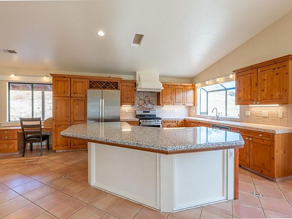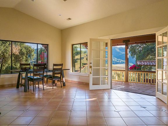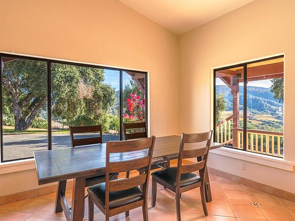 Surrounded by captivating views of mountains and vineyard-laced hills, serenity and sunshine abound at this 40-acre, mostly usable, private hilltop property. A mature olive tree grove lines the road to the single-level farmhouse fronted with an expansive veranda. The open concept great room features vaulted ceilings, tile floors, river rock hearth and cozy wood stove. The well-designed kitchen offers a large island with breakfast bar, dual-fuel range and window sink gazing at delightful bougainvillea. Primary bedroom ensuite offers countryside vistas in two directions. Two additional bedrooms plus an office and a second full bath. Stucco exterior with tile roof, A/C, laundry room. Stately oaks and flourishing cacti enchant the landscape. Large area perfect for a corral plus three terraced areas for gardens or a vineyard. Pergola swing and fenced henhouse and range. New well installed in 2021. Meander the hills to an additional peaceful meadow.