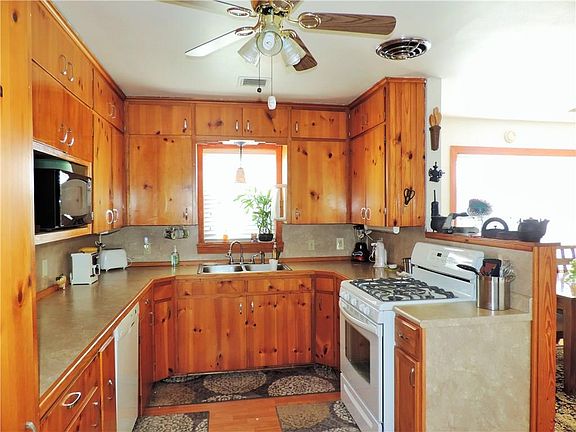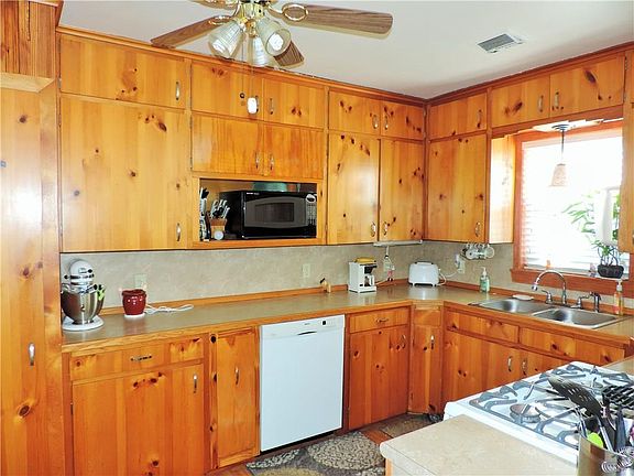 From real wood knotty pine walls to wood flooring under the current floors, this place is ready for decorating in retro style or French Country! It is currently move in ready with may updates which include newer windows, updated bathrooms (walk in showers, vanities & light fixtures). 3 bedrooms 2 baths with an abundance of storage inside & out. Large quant office area makes it desirable for most. Storage bldgs., RV Parking, covered back porch, enclosed sun room & metal roof are just a few bonuses.