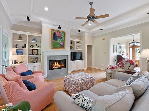 Looking for an established neighborhood with trees and mature landscaping? Then, look no further. Located in convenient Fairfield Place, this 3100+ sq ft brick and hardiboard home has 4 spacious bedrooms and 3 bath has it all while sitting on a cul-de-sac and exuding privacy. Inviting front porch welcomes you to the white marble tiled foyer and dining area. Open concept, split bedroom plan, tall ceilings and hardwood floors makes for easy living. Living Room features a tray ceiling, hardwood floors and gas fireplace flanked by built-ins. Kitchen is equipped with stainless steel appliances, granite counters and has an eat-in breakfast area. Primary suite opens to the back deck for lots of natural light, has a cherry armoire (negotiable) for storage and has a large walk-in closet. Primary bath has double vanity sinks, a jacuzzi tub, and separate shower and toilet. All 3 bathrooms contain double vanity sinks. Laundry room includes utility sink. Enjoy the private landscaped back yard while relaxing on the large back deck with ceiling fans. You will enjoy watching the birds and butterflies as well as the blueberry bush, Meyers lemon and Satsuma bushes. Yard has an electric fence (with 3 collars), irrigation with separate water meter. Attached double garage with plenty of additional storage. Central vacuum. Surround sound in living area. Windows have hurricane coverings. This is an AS-IS sale. Information provided is deemed reliable, but not guaranteed.