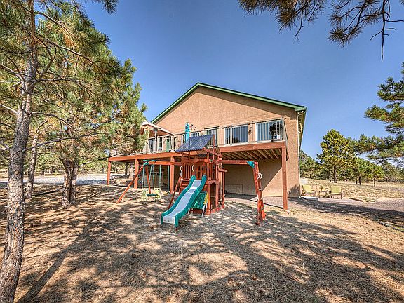 Gorgeous custom ranch 5 bedroom 3 bathroom home with mountain views located on a quiet culdesac street! Nested on a large treed lot just under a full acre, this home offers features you won't find in most new builds. On the main level, walk inside to the open and inviting floor plan with 9 foot ceilings. Spacious master bedroom with 5 piece master bathroom. Storage space is abundant with 8 large closets on the main level all with built in shelving. Radiant heated flooring keeps you warm throughout the winter, and the 2x6 construction and hyper insulation helps keep energy bills low for heating and hot water. Walk out onto the spacious deck, overlooking Pikes Peak and the Rockies. The walkout basement level comes fully stocked and furnished with turnkey income potential for short term/long term renters, guest house, or mother-in-law suite. The basement suite with two bedrooms, full bathroom, family room, kitchen, and laundry is fully accessible from the outside with a private entrance, driveway, patio, and it's own 2 car carport. Come see this one of a kind custom home!
