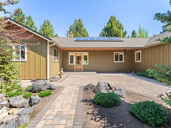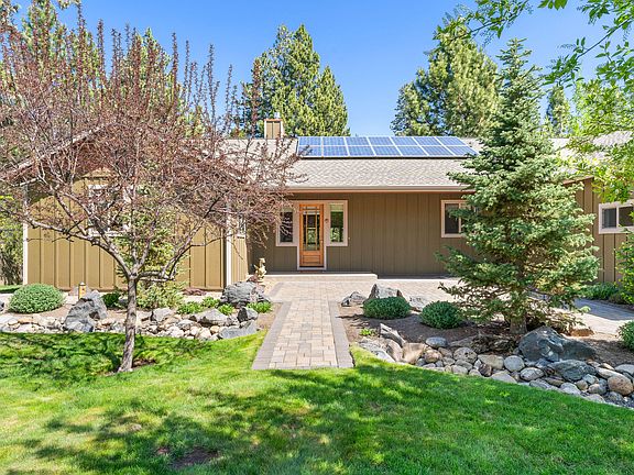 Situated on 1.34 acres, this meticulously maintained residence offers exceptional privacy, numerous upgrades and energy efficiency. The park-like, fully fenced and gated property has been thoughtfully landscaped for year-round enjoyment. Just inside the entry, a vaulted great room welcomes you with a gas fireplace, built-in shelving, and rich hardwood flooring. The chef's kitchen boasts stainless steel appliances, an expansive breakfast bar, and a walk-in pantry, all overlooking a spacious dining area. The west wing of the home includes two guest bedrooms, a bathroom, and an office, while the east wing features the primary bedroom suite and a massive bonus room. An oversized 3-car garage with utility sink, a carport, and 30-amp RV plug provides ample space for projects and parking. Solar panel energy production, a new 50-year roof, and fresh exterior paint make this home move-in ready—offering both a peaceful retreat and a highly functional homestead.