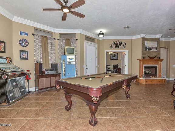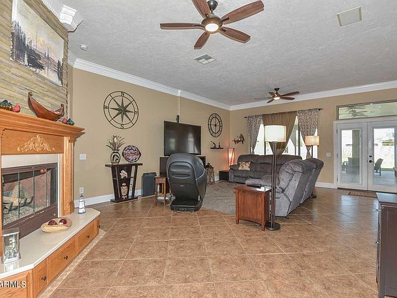 Heres the one everyone has been waiting for ! Newer perfect size home on 1.4+ Irrigated acres with huge outdoor patio and two ,yes two 3 car garages or Workshop ! Modern kitchen with custom cabinets and pull out drawers, breakfast bar and double ovens ! Very open to the great room and gas fireplace ! Game room large enough for a pool table or use it as formal dining ! Split bedroom plan with a large owners suite, Double sinks, separate shower and tub with jets and color lights ! Extra storage cabinets or shelves in the laundry room and throughout the house ! Den /office could be a 4th bedroom if you add a door for a closet ! Higher ceilings and ceiling fans and TV mounts throughout! Huge beautiful covered patio ! Tile floors, stainless steel appliances, Workshop with 220outlet hit More ! Corian counters and sink ! Gas fireplace with custom mantle and drawers ! Window seat and storage in den ! Above and below kitchen cabinet lighting ! 6 inch base boards and crown molding through out !
