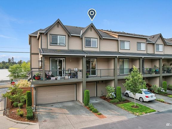 Fantastic South facing View Townhome at Silver Lake. Lower-level entry w/ bonus space or home office & ½ bath gives you flexibility where needed. Main level greets you w/ 10ft ceiling & lg windows showcasing the Kitchen w/ gas range, SS Appl, granite counters & soft close drawers. Beautiful engineered hw floors flow throughout this level into the dining & living room w/gas fp for those cozy nights. Step out onto your X-long covered deck to enjoy your morning coffee or to BBQ. Upstairs offers convenient laundry & 2 Primary suites, one with ¾ bath & view the 2nd w/full bath, both have ample closet space. Oversized 1 car garage w/storage rack, plenty of guest parking. Bball court, playground, no rental cap, pet friendly & conveniently located!