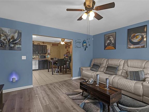 One level home with huge primary suite and walk-in closet! This home has wide plank flooring throughout main living areas, wide doorways and smooth ceilings throughout. Kitchen features stainless steel appliances, eat-in area and opens to living room. Huge primary suite is 20' x 14', with large walk-in closet, linen closet and bathroom with tile shower. Second bedroom has close access to second full bath and laundry. Home is handicap accessible. Outdoor features include fenced yard, storage shed, patio area with pavers and pergola and oversized driveway.