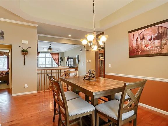 Stunning custom built 4 bedroom ranch on a cul de sac in Birchwood Falls.This spacious open floor plan features tray and vaulted ceilings. There is a fully equipped eat-in kitchen with corian counters and a separate dining room. The family room adjoining the kitchen has a stone fireplace w gas logs. Step out onto the 22x10 trex deck(2017) from the family room or master bedroom and enjoy the wooded view and enchanting sound of the natural waterfalls. Low voltage outdoor lighting enhances the surroundings. First floor laundry. The formal lower level has a bedroom and full bath. A versatile amount of space allows for pool table, living space and wet bar. Patio door leads to stamped patio area. The mechanics are tucked away in a separate area with a large workshop/storage. Furnace and A/C-3 yrs old. The home was built in 2006 but has since had numerous upgrades inside and out. Home is meticulous, sophisticated but comfortable, and simply marvelous.