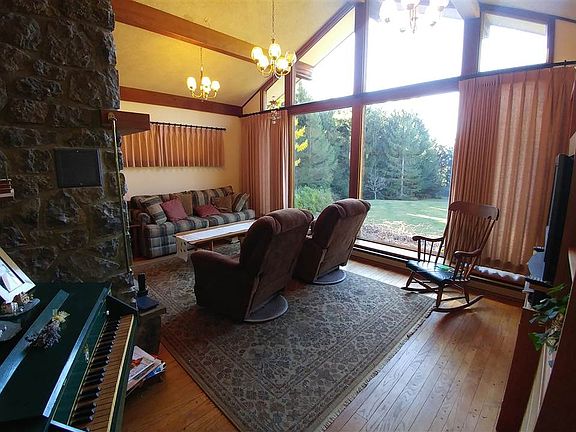 Secluded & privacy make this a picture perfect country setting! 3 bedroom, 2 bath raised ranch on 47 acres!! Perfect for the outdoorsman ! Floor to ceiling fireplace, living room with large picture window overlooking your incredible yard and in the distance, the Schoharie Valley! Large eat in kitchen, formal dining room, master suite, deck and outbuilding. First floor offers tons of possibilities, family room, rec room plus already finished workshop, laundry room & office or bedroom! Rare redwood siding!
