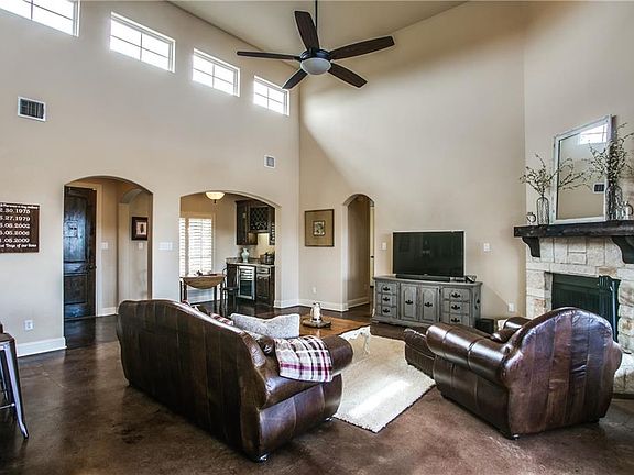 Custom home on 1 acre site in a family friendly community. Many upgrades including shutters, granite countertops, recently updated master bath, security system, sprinkler system, french doors in bedrooms and living room. The open floor plan, outdoor built in grill, covered patio and fire pit make this the perfect home for entertaining. Plenty of options to enjoy the outdoors with the built in trampoline and basketball court. Property also features an aluminum fence and a storm shelter. Fourth bedroom makes a nice flex space and is currently being used as an office.