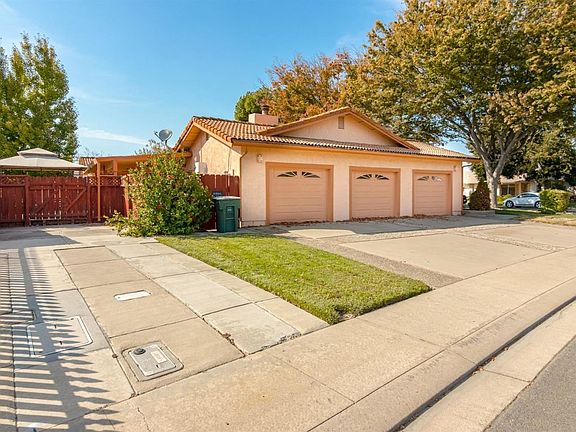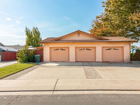 Mediterranean/Spanish style single story located in the desirable Vintage Estates neighborhood. The multiple arched entry leads to a covered front porch area. Double door entry with new tile leads to the large living room. Kitchen has new dishwasher, tiled counters and counter bar area that opens to the separate family room with fireplace. Inside laundry room comes with washer & dryer and extra cabinet storage. Both bathrooms have double sinks with new counters and flooring. Fresh carpet, paint and light fixtures/fans/faucets/door hardware throughout the home. Updated vinyl dual pane windows and sliders. Attached over-sized 3 car garage with cabinets for extra storage. Dedicated RV or Boat parking on the side of home. Large covered patio area. Backyard has a deck and fountain that can easily be changed out to a large grassy area. Current Tesla solar electric lease will save you money on your electric bill. Don't miss out on this well laid out and comfortable 4 bedroom home!