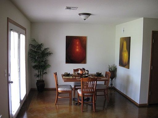 White Barn Estates Duplexes1750 Square Feet 12 x 12 BedroomsStained & Scored Concrete Flooring Each Bedroom has a Private BathHalf Bath in Common AreaKitchen with Plenty of Cabinets Large PantrySee Thru Breakfast BarLarge Dining Room and Spacious Living RoomCovered PorchesAccent Wall PaintOversized 2 Car Garage with Storage Room All White Barn amenities for families and students included