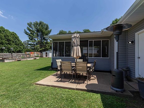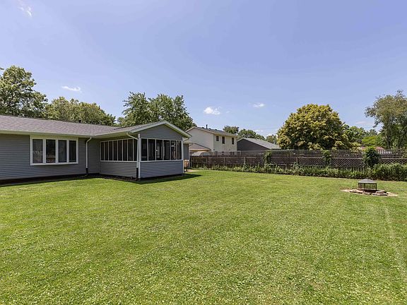 Crisp curb appeal and clean, modern updates set the tone for this welcoming 3-bedroom home, 2 bathroom home. Wrapped in fresh, on-trend siding and anchored by a sleek black garage door with frosted windows, the exterior is as stylish as it is low-maintenance. Inside, fresh paint and new vinyl plank flooring stretch through the foyer, bathroom, living, and dining areas—offering a clean, cohesive look throughout the main living spaces. The layout is open and easy, with the living room looking out to the backyard and into the kitchen and dining room. From the dining room, step into the screened-in porch and out to the patio—an ideal setup for entertaining or relaxing. The primary bedroom features a mirrored sliding closet door that adds both function and light. Downstairs, the finished basement is designed with wellness in mind: think home gym setup, a built-in sauna, and a newly added bathroom with a large spa tub. For the right buyer, if the price is right, the gym equipment can stay. Garden beds have been added for growing food or cut flowers. Behind the scenes, the home has been thoughtfully updated: new furnace (2019), central air (2023), water heater (2019), electrical updates throughout, French drain tile system in the basement, and it’s already wired with fiber optic. Simple, polished, and full of smart upgrades—this one is ready for move-in day.