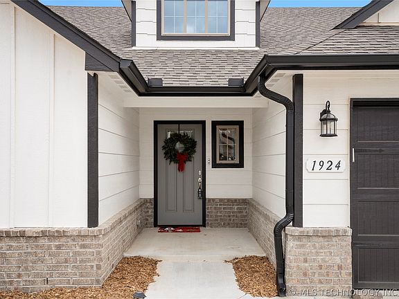 Welcome to this like-new, 4-bedroom, 2-bath home nestled in the charming Tucson Village community. Step into an inviting open-concept layout that seamlessly combines the kitchen, dining, and living room area. The kitchen boasts a fully functional island with seating, granite countertops, and a spacious walk-in pantry. The living room features vaulted ceilings, complemented by a beautiful white mantle ventless fireplace, and bathed in natural light through large windows. Primary bedroom featuring vaulted ceilings, an ensuite with a double sink vanity, a soaking tub, and a walk-in shower. The primary bedroom also provides convenient access to an oversized closet with a direct connection to the laundry room. Additional features include remainder of builder 10-year home warranty, a tankless hot water heater, a wifi smart thermostat, and hard-wired data lines, mudroom situated right off the garage door entry, and a covered patio. Tucson Village community, includes a neighborhood pool. Conveniently located about 1 mile from Creek Turnpike access, less than 2 miles to Nature Park, and close to schools, this home offers a perfect blend of comfort and accessibility. Don't miss the opportunity to make this home yours – schedule a showing today!