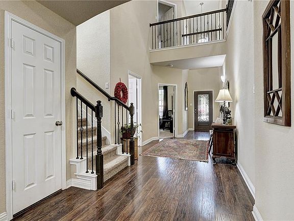 Perfect & spacious w/5 beds,4 full baths, multi-gen families. Bright & open with recent wood laminate flooring, granite counters, dual ovens, large center island with custom limestone & 2.5 car garage. All bedrms are large & have walk-in closets. Large laundry rm & MUD room area. Low maintenance backyard with a covered patio, spa, sprinklers & large privacy trees. Enjoy access to community pool, parks, tennis courts, and playground & a steps away to Lakewood Park Leander is building-125 acres. A Must See!