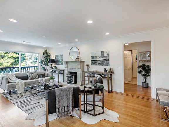 Welcome to 1924 Hilman Ave. located in the heart of Belmont. This 4 bedroom, 3 bath home welcomes you with a formal entry that leads to the bright living room with a fireplace. A chef's kitchen that serves as the heart of the home opens to the dining area and living room to offer a nice open concept. The kitchen is sure to impress with a large island that has a secondary sink, a 6 burner Wolf Range with a grill, abundant cabinet and counter space as well as built in wine storage. Two bedrooms are on the main level, including the primary suite that has vaulted ceilings and a luxurious bath with an oversized stall shower, plus a large vanity with a dressing area, creating a private retreat that combines comfort with unparalleled style. The lower level introduces a versatile floor plan and features a family room, 2 sizeable bedrooms, another full bath and a large kitchenette with a fridge, cabinets and lots of counter space, providing potential for in-law quarters or making entertaining a breeze. Step out to the very large deck where you'll find a built in BBQ area and plenty of room for both a sitting area and large table for outdoor dining. In addition, there's childrens play structure, making the yard the perfect place for entertaining, relaxing and play.