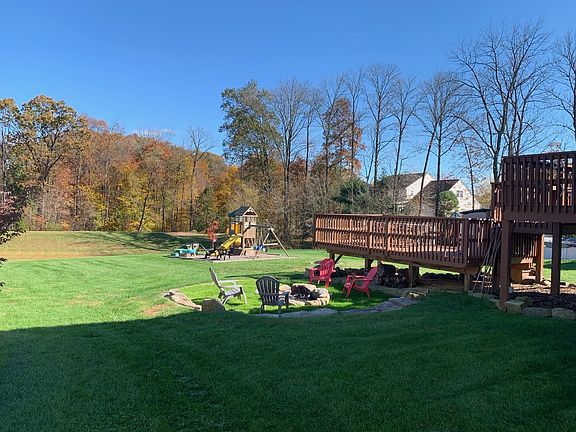 Looking for a stunning open floor plan with a ton of natural light? Enter this home and be blown away by the cathedral ceilings in the foyer, a spacious dining and living room, fresh paint and new floors . The rear of the home is made of a large family room with Gas fire place that opens up to breakfast area and a bright kitchen. The kitchen has sliders that lead out to a multi-tier deck that provides you expansive views of your back yard, open space, play area and fire pit. The main level is finished off by a spacious laundry room, 1/2 bath and 2 car garage. Retreat to the second floor and step thru the double doors entry of the the master suite. A walk in closet and master bath with a sky light, large jetted soaking tub, and double bowl vanity. The entire second floor has brand new carpeting and all three additional bedrooms offer great space with large closets and are serviced by an additional large full bath. The last space for you to explore is the wide open day light basement, ready for your imagination!! This is truly a stunning home with meticulous curb appeal you won't want to miss.