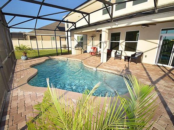 GORGEOUS newer home with many luxuries! Spacious 5 bedroom/4 bath POOL home with added flex space and bonus rooms! STUNNING kitchen cabinets with extended counter top space, crown moulding, underneath cabinet lighting, STAINLESS Steel appliances, large closet pantry, breakfast bar plus eat-in area seamlessly interacts with family room. Formal living & dining rooms have custom crown moulding & chair rails - REALLY dresses up the rooms! Full bedroom, bathroom, and study downstairs. Upstairs MASTER Suite with ENORMOUS closet space & dressing area. 3 bedrooms, 2 bathrooms, a theater room, loft, and laundry room are ALL upstairs too! Screened Solar heated POOL with pavers, lanai with ceiling fans to sit in comfort to watch the sun set at night! Vinyl fence and no rear neighbors! 3 car tandem garage, 2 hot water heaters, 2 HVAC units. Seller has also added LED outdoor lighting package, Water softener and filtration system that stays. Worth seeing as there are so many features not yet mentioned plus an ENERGY STAR home! Low electric bills with Foam insulation and low e-windows. Put this home on your "Must see first" list!!