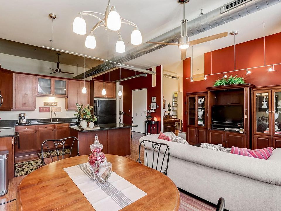 Welcome home to Brewers Hill! This 1 bedroom + den truly works as a 2 bedroom. The den has an amazing walk-in closet. The primary bedroom is spacious with an extraordinary walk-in closet that is more than double the depth of a traditional walk-in. There is beautiful wood flooring throughout the main living area, primary bedroom, and den. The ceiling height is approximately 12 ft. with 9-ft high windows which lets the natural light shine through. A cook's kitchen with 42'' high maple cabinets, granite counters and center island which serves as a wonderful breakfast bar. Extra storage and 1 parking spot in the heated garage. The condo building offers a designated bike room and a community room for private gatherings. A sought-after location. A 1 year home warranty is provided by the seller.