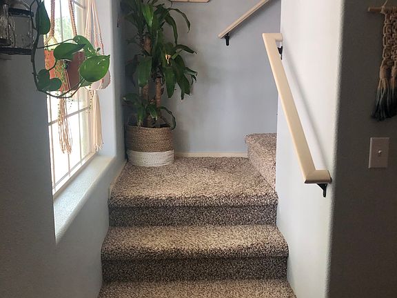 The home faces down a cross street so you aren't looking directly at another neighboring house. Quiet dead-end neighborhood with no through traffic. There's a catio, and a gate on both sides of the property. The thermostat and garage door are 'smart' so you'll have exclusive control via smart phone. Laundry is upstairs nearby all bedrooms, so no lugging clothes around. Sunsets are enjoyable in the summer as the patio faces west.